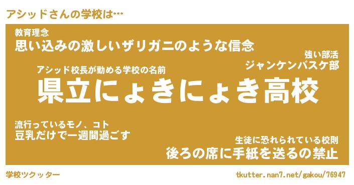 | ファンタジー風あだ名 | 『アシフェル』『エターナルアシッドー』 |