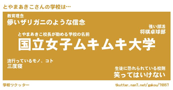 | 肩書あだ名 | 『とやまあきこ社長』『とやまあきこ班長』 |