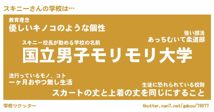 | 男性向けラノベタイトル風あだ名 | 『スキニーの憂鬱』 |