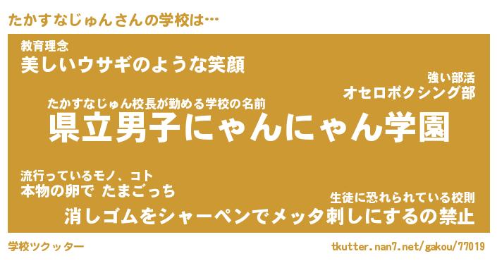 | 男性向けラノベタイトル風あだ名 | 『タカスナジュンアートオンライン』 |
