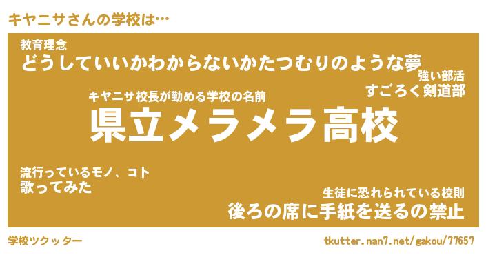| ヒーロー風カッコイイあだ名 | 『スーパーキヤニサ』『炎刃騎士キヤ』 |