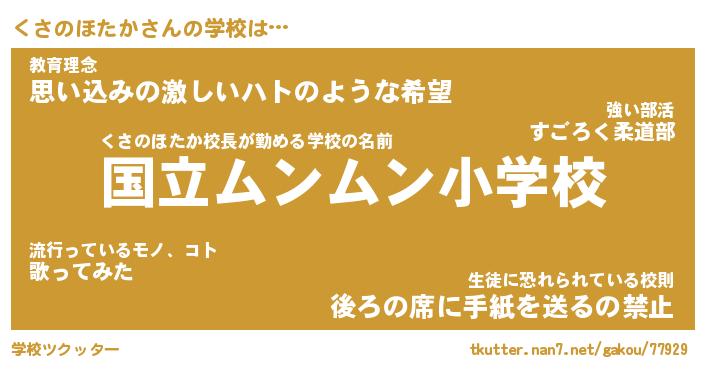 | 先生 | くさのほたか先生が勤める学校名『国立もふもふ中学校』 |