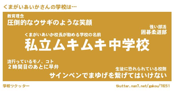 | 男性向けラノベタイトル風あだ名 | 『くまがいあいかの憂鬱』 |
