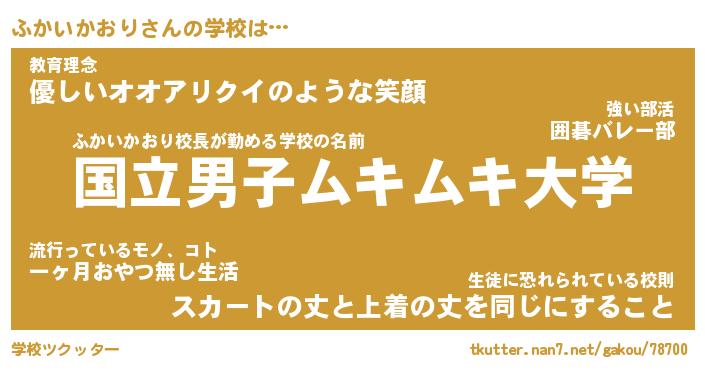 | ヒーロー風カッコイイあだ名 | 『スーパーフカイカオリ』『魔戒騎士フカ』 |