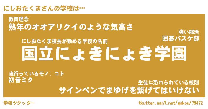 | 男性向けラノベタイトル風あだ名 | 『にしおたくまの憂鬱』 |