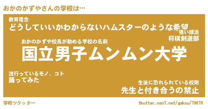 | 男性向けラノベタイトル風あだ名 | 『おかのかずやの憂鬱』 |
