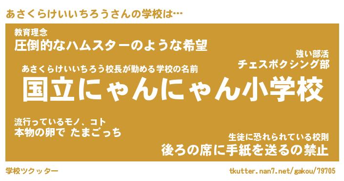 | 男性向けラノベタイトル風あだ名 | 『あさくらけいいちろうの憂鬱』 |