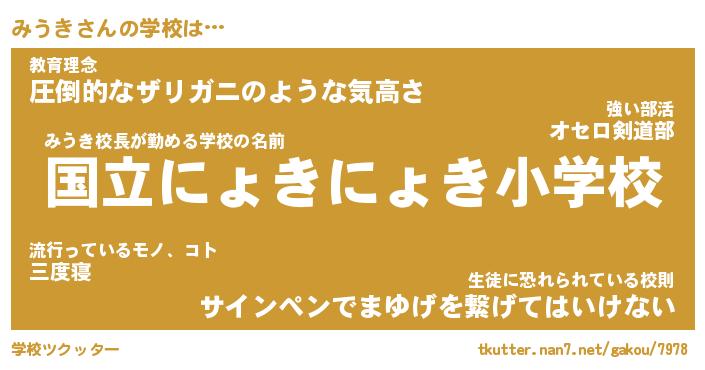| ピコ太郎風あだ名 | 『ミコ史郎』『ピミ次郎』『ミウ次郎』 |