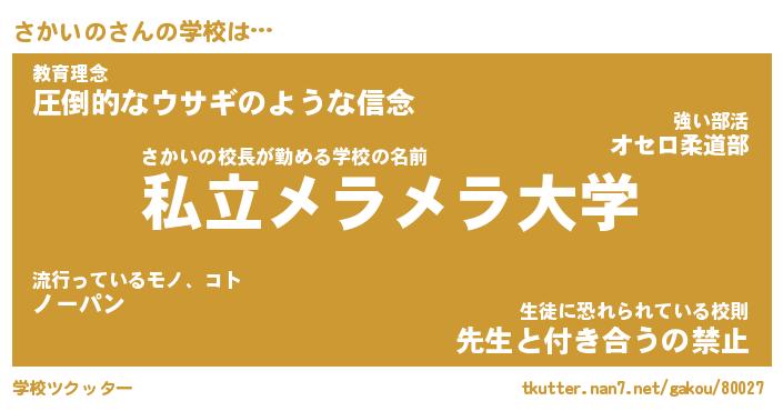 | 胡散臭い通販商品みたいなあだ名 | 『必ず成功するブレスレット…その名も「さかいの」』 |