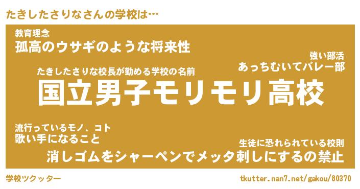 | 男性向けラノベタイトル風あだ名 | 『たきしたさりなの憂鬱』 |