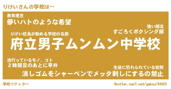 | りけい先生が勤める学校名『道立もふもふ中学校』 |