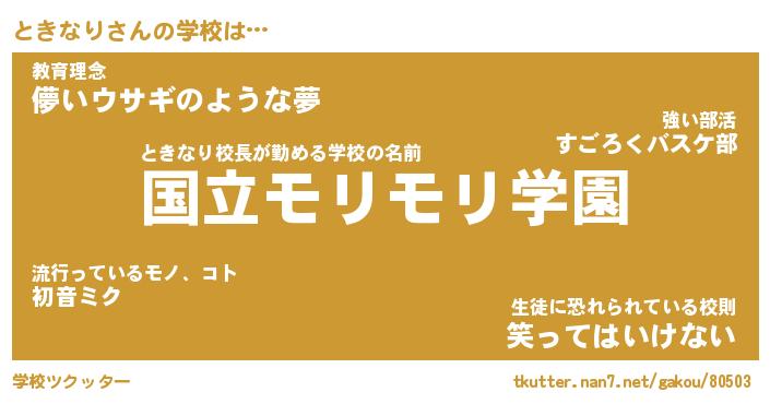 | 男性向けラノベタイトル風あだ名 | 『ときなりの憂鬱』 |
