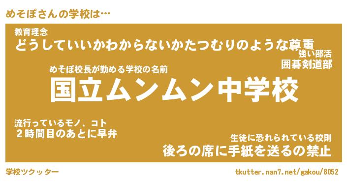 | 男性向けラノベタイトル風あだ名 | 『めそぽの憂鬱』 |