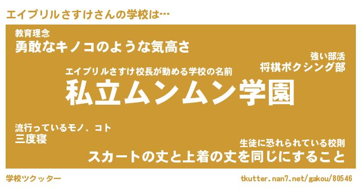 | 男性向けラノベタイトル風あだ名 | 『エイプリルさすけの憂鬱』 |