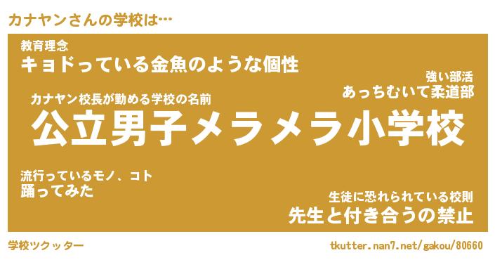 | 男性向けラノベタイトル風あだ名 | 『カナヤンの憂鬱』 |