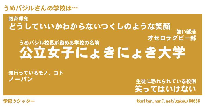 | 男性向けラノベタイトル風あだ名 | 『ウメバジルアートオンライン』 |
