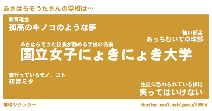 | ヘコむあだ名 | 『あさにゅー』『つくし』『あさお』 |