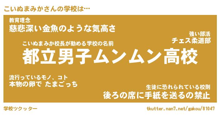 | 女子向けラノベタイトル風あだ名 | 『こいぬまみか姫と円卓の騎士』 |