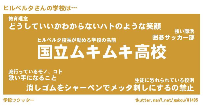 | ヒーロー風カッコイイあだ名 | 『スーパーヒルベルタ』『天弓騎士ヒル』 |