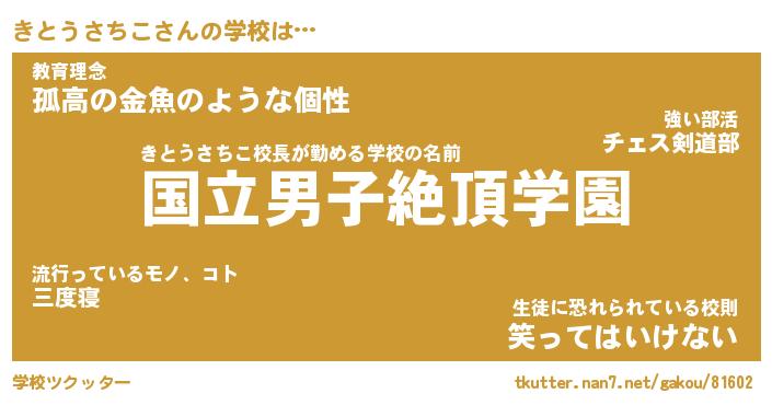 | ヒーロー風カッコイイあだ名 | 『スーパーキトウサチコ』『黄金騎士キト』 |