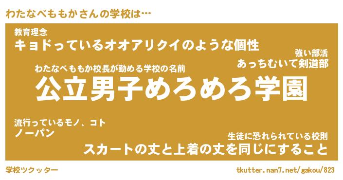 | 男性向けラノベタイトル風あだ名 | 『わたなべももかの憂鬱』 |