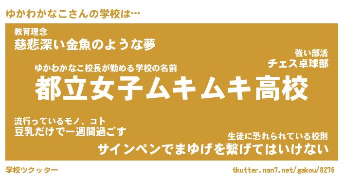 | ヘコむあだ名 | 『ゆかにー』『牛乳』『ゆかお』 |