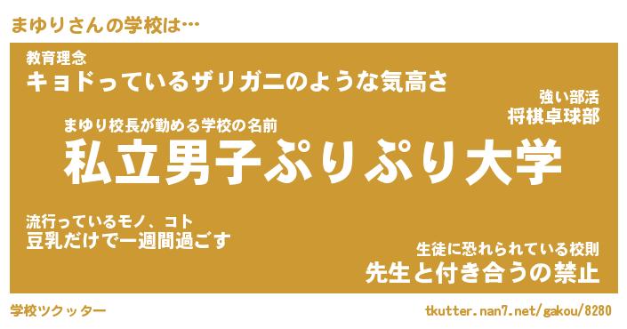 | ヘコむあだ名 | 『まゆもー』『酢こんぶ』『まゆお』 |