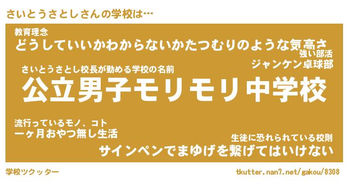 | 男性向けラノベタイトル風あだ名 | 『さいとうさとしの憂鬱』 |