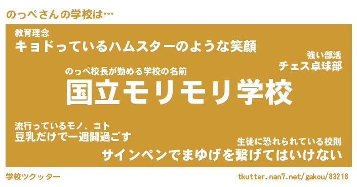 | 男性向けラノベタイトル風あだ名 | 『のっぺの憂鬱』 |
