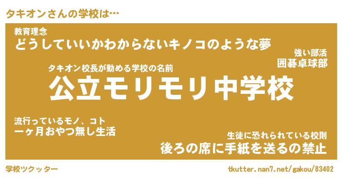 | ヒーロー風カッコイイあだ名 | 『スーパータキオン』『銀牙騎士タキ』 |