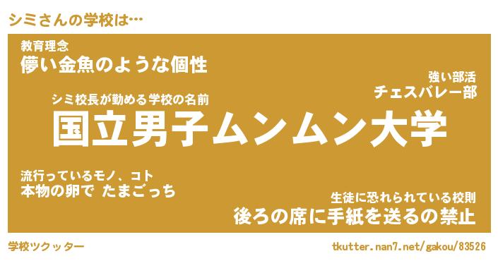 | ヘコむあだ名 | 『シミにゅー』『なまこ酢』『シミお』 |