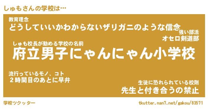 | ヘコむあだ名 | 『しゅもー』『つくし』『しゅ太郎』 |