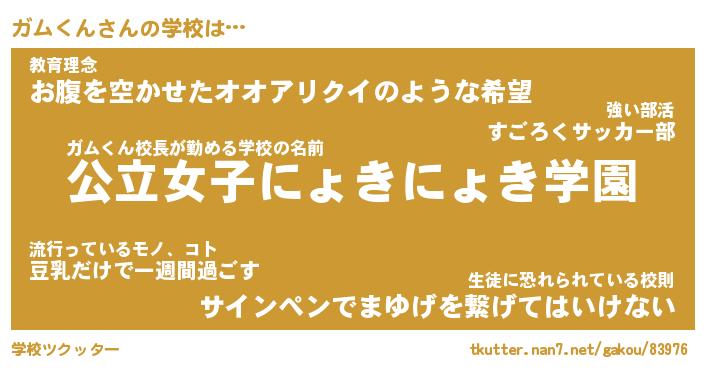 | 意味不明あだ名 | 『ペロリンガムくん』『永久保存ガムくん』 |