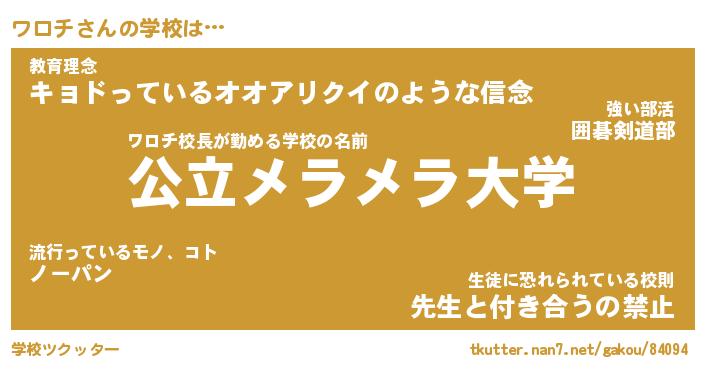 | 男性向けラノベタイトル風あだ名 | 『ワロチの憂鬱』 |