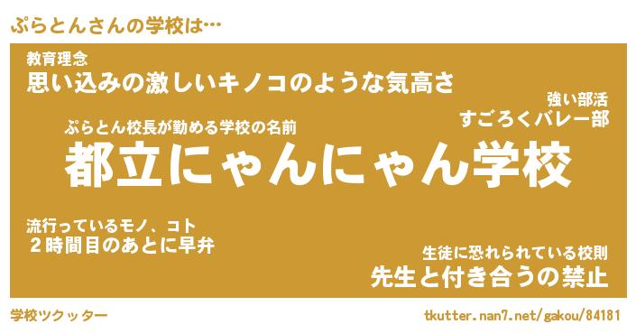 | 男性向けラノベタイトル風あだ名 | 『ぷらとんの憂鬱』 |