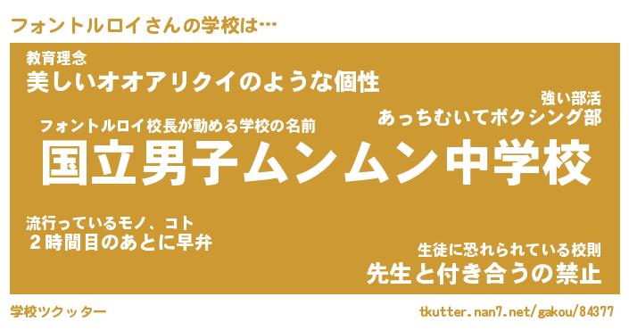 | 女子向けラノベタイトル風あだ名 | 『フォントルロイ姫と円卓の騎士』 |