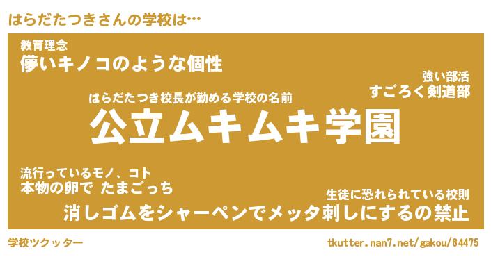 | ヒーロー風カッコイイあだ名 | 『スーパーハラダタツキ』『銀牙騎士ハラ』 |