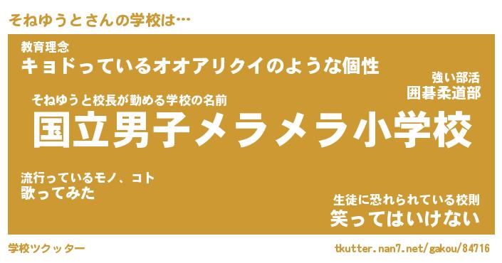 | 男性向けラノベタイトル風あだ名 | 『そねゆうとの憂鬱』 |