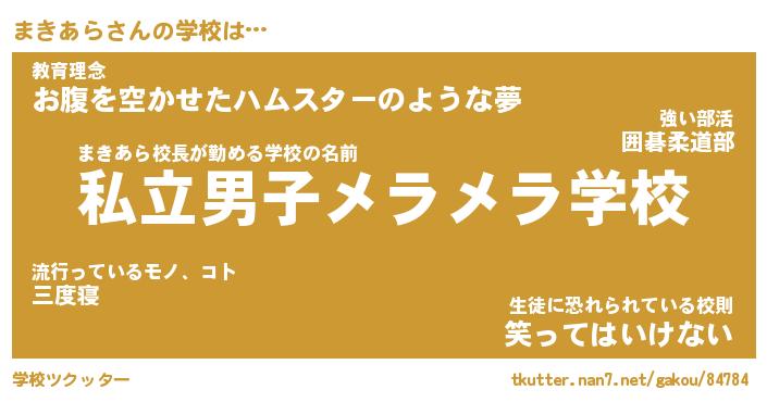 | 男性向けラノベタイトル風あだ名 | 『まきあらの憂鬱』 |