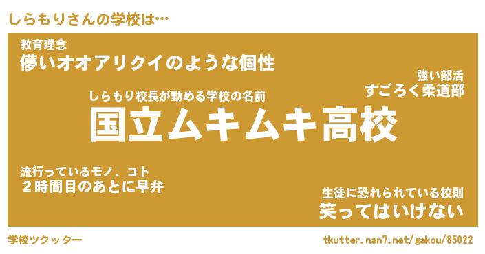 | 男性向けラノベタイトル風あだ名 | 『しらもりの憂鬱』 |