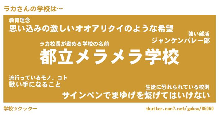 | 男性向けラノベタイトル風あだ名 | 『ラカの憂鬱』『ノーゲーム・ノーラカ』 |