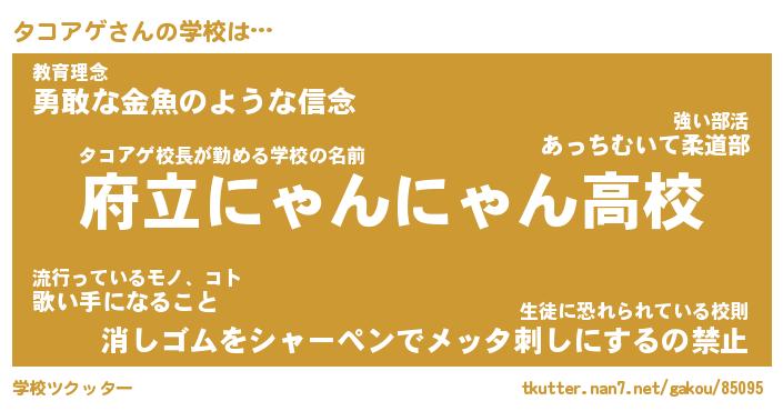 | 男性向けラノベタイトル風あだ名 | 『タコアゲの憂鬱』 |