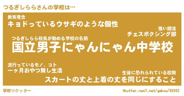 | 男性向けラノベタイトル風あだ名 | 『つるぎしららの憂鬱』 |
