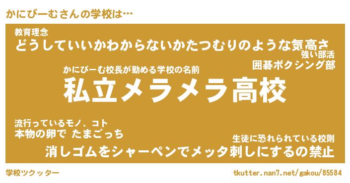 | ファンタジー風あだ名 | 『カニフェル』『エターナルカニビームー』 |