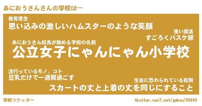 | ヘコむあだ名 | 『あにもー』『豆乳』『あにを』 |