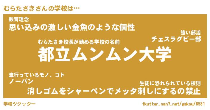 | 男性向けラノベタイトル風あだ名 | 『むらたさきの憂鬱』 |