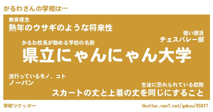 | ヒーロー風カッコイイあだ名 | 『スーパーカルワ』『ウルトラかるわマン』 |
