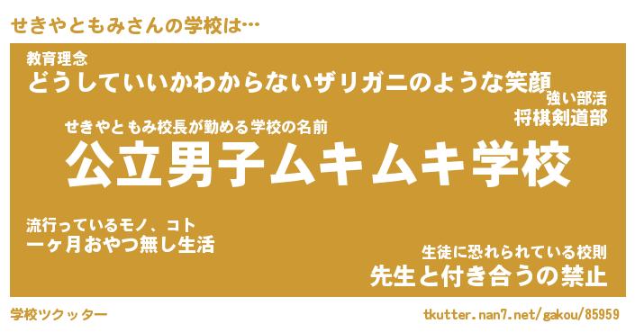 | 男性向けラノベタイトル風あだ名 | 『せきやともみの憂鬱』 |