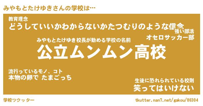 | 男性向けラノベタイトル風あだ名 | 『みやもとたけゆきの憂鬱』 |