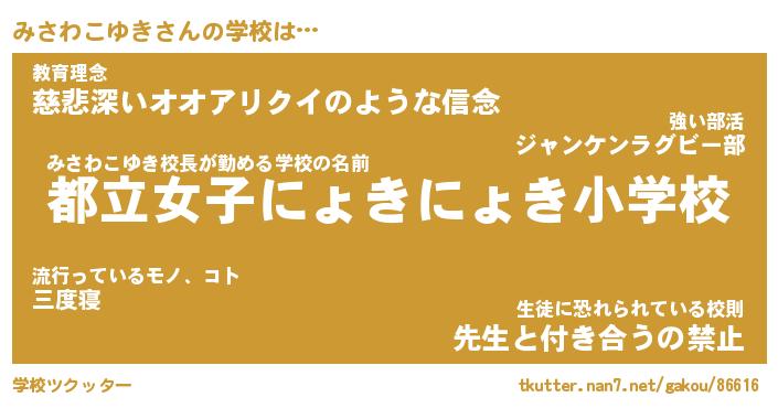 | 恥ずかしいあだ名 | 『プリティーみさわこゆき』『みさっちょ』 |